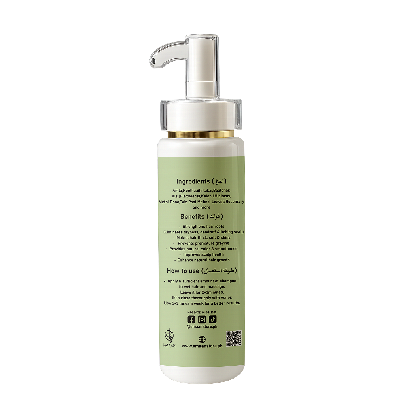 Gentle yet effective, Emaan's Herbal Shampoo is a nourishing blend of nature’s finest herbs formulated to cleanse, strengthen, and revitalize your hair from root to tip. Infused with herbal extracts, it helps reduce hair fall, removes buildup, and leaves your scalp feeling fresh and balanced — all without harsh chemicals.